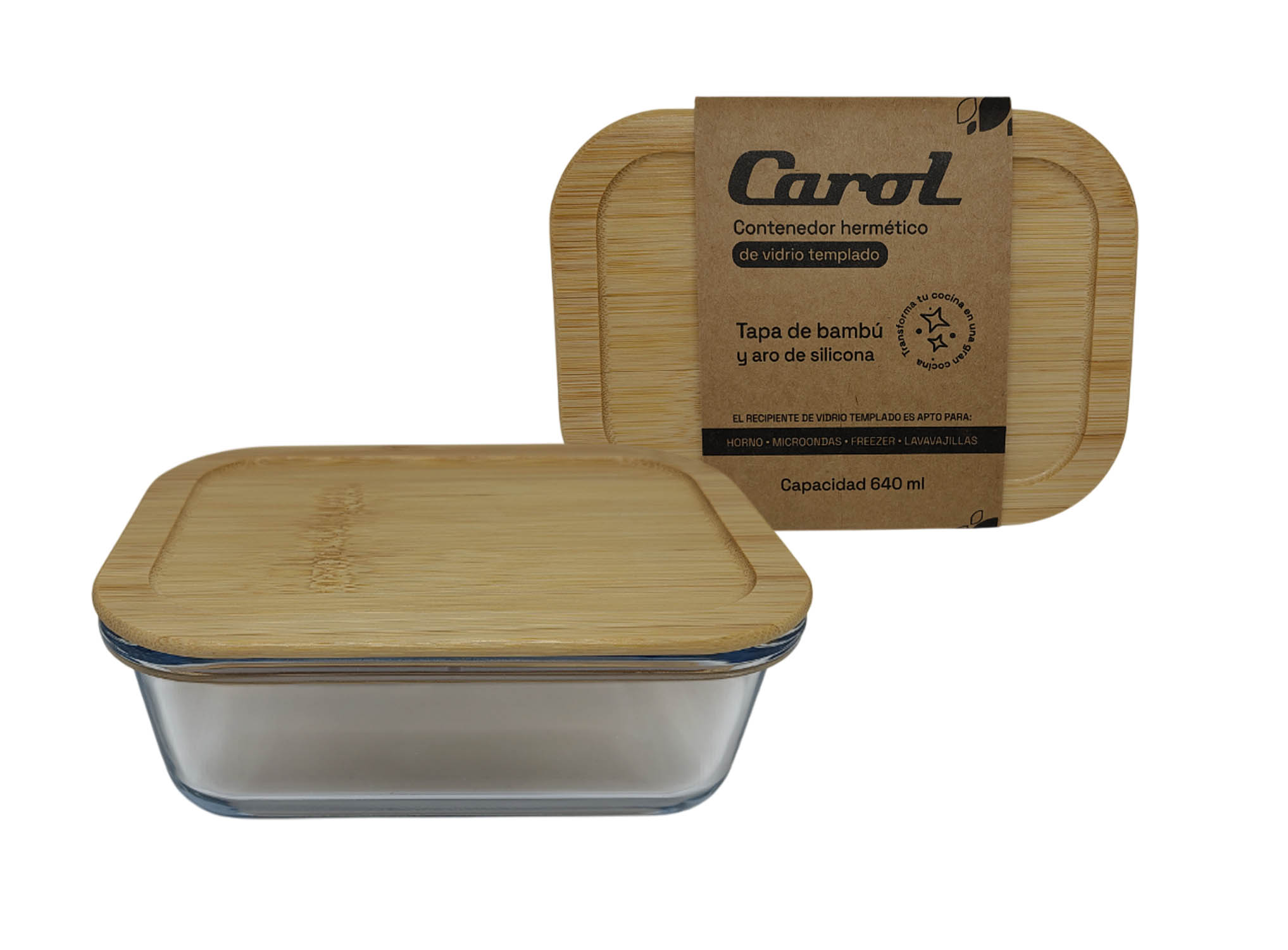 CONTENEDOR HERM. RECT. VID. T/BAMBU 17.8X13.1X6.6CM 640ML
